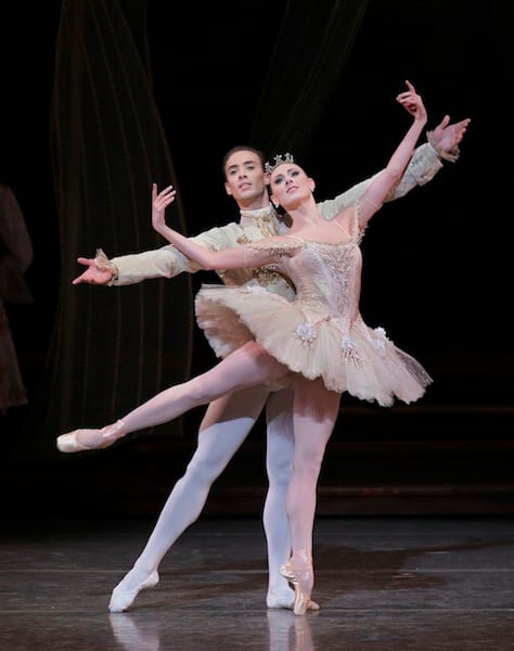 The various Prologue fairies were not helped by the very fast tempi and were bare able to slam out the steps, much less create individual gifts. Ashly Isaacs and Brittany Pollack as Ruby and Emerald (the steps were recognizably Petipa) had some of the needed sparkle, especially Isaacs. Zachary Catanzaro danced Martins' fast, tricky, and rather unflattering choreography as Gold; this was set on a more compact dancer and Catazaro's legs had a hard time, though his turns were elegant. Savannah Lowery looked quite uncomfortable as Diamond.