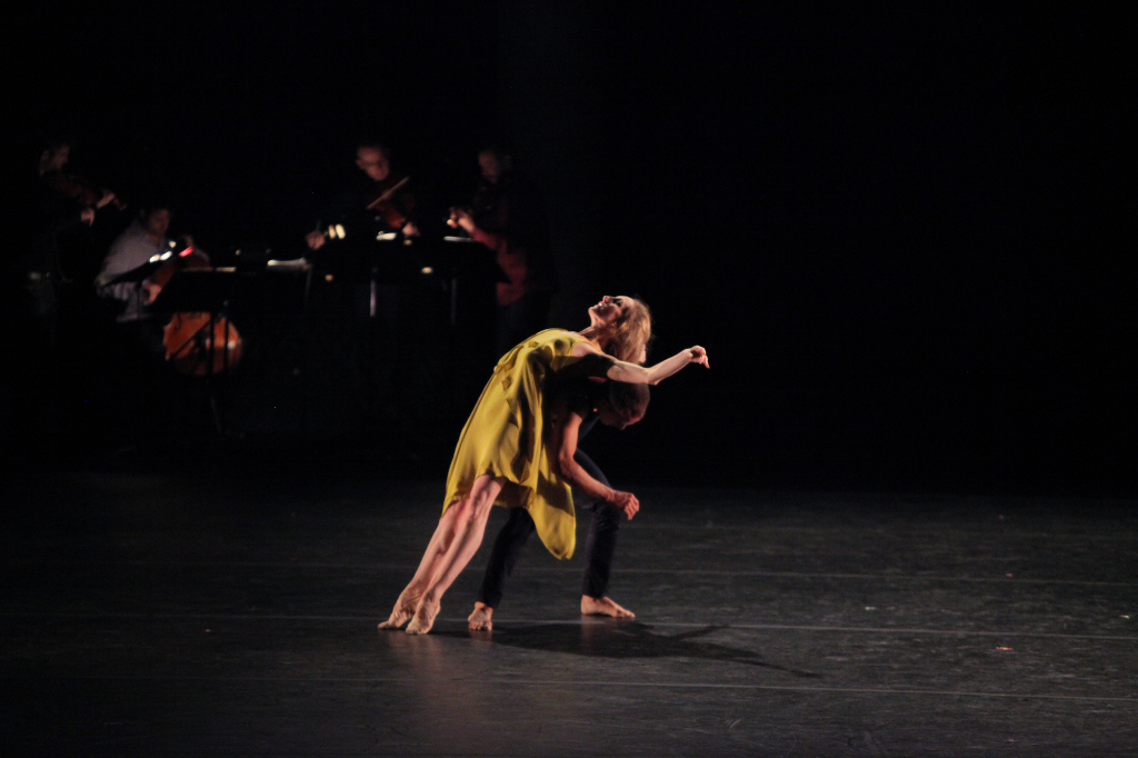 Yet another duet, “This Bitter Earth” performed by Isabella Boylston and Calvin Royal III, would have invited even more of a Whelan comparison considering this Christopher Wheeldon ballet was originally set on the retired NYCB ballerina, but the dancers here managed to give the duet a different feel. Boylston, dancing in a leotard rather than a dress as did Whelan, gave the work a more athletic flavor through both her performance and because of her more athletic physique. Where Whelan once was tender and light, Boylston was measured, purposefully channeling emotion instead of incidentally creating it through dance. The duet’s chemistry flew thicker and slower here, but it was enjoyable nonetheless and was enhanced further by the live vocals and music of Kate Davis and the Catalyst Quartet, all present on stage with the dancers.