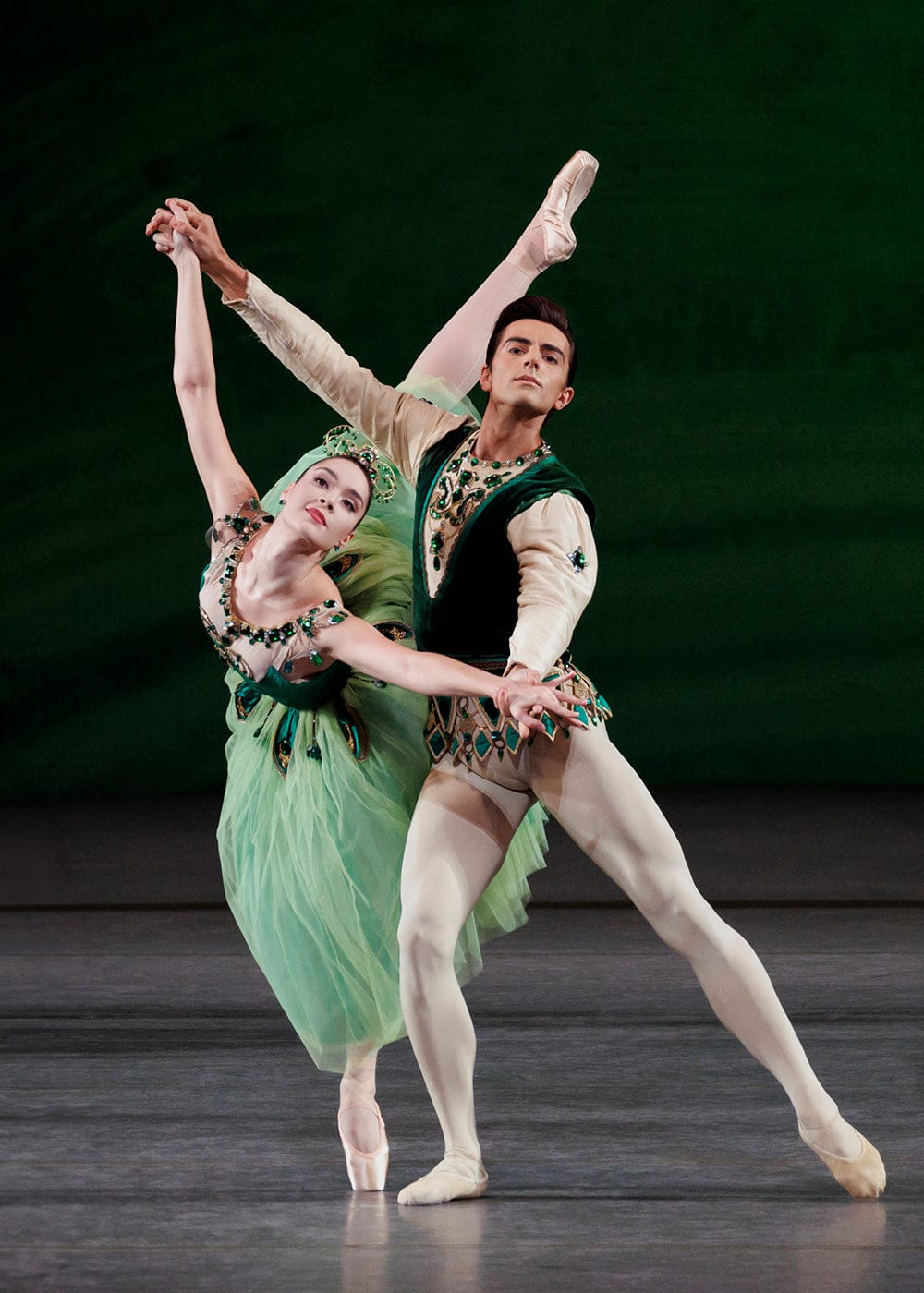 There was nothing brash about van Enck’s debut, and nothing quiet either. Her dancing was clear, dynamic, and endearing as she flew around the stage looking like a pearl in a bowl of red hot embers. It was a lighthearted interpretation, a young girl having the time of her life, and she absolutely owned the stage. Furlan was a powerful and graceful partner, though he lacked some of the earthy swagger built into the role. He seemed almost too gracious, as if he were dancing in an unfamiliar language; his accent, though, was charming.