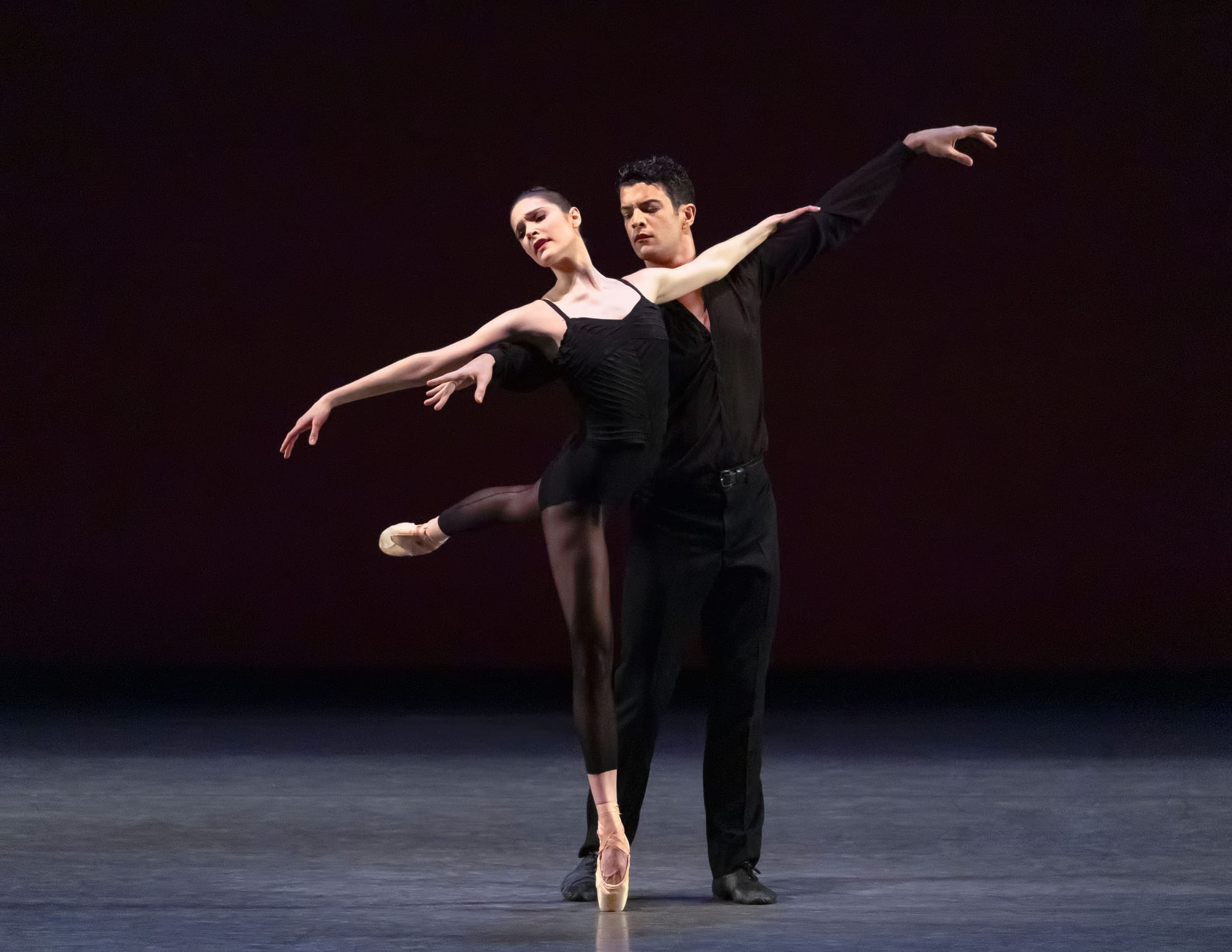 It was a rather bleak affair, with the couple physically connected but impassive. The staging was striking, beginning and ending with a dark shadow (Bolden) seeming to pull Sautter along the ground. (An article about the revival posted by NYCB https://www.nycballet.com/discover/stories/reviving-albert-evans-in-a-landscape/ says Evans was inspired by the Nutcracker slide.) The pas de deux, danced with a fierce intensity, rambled a bit, with lots of cactus arms, dead bug poses, and death spirals. Sautter, a corps dancer, was magnificent, tall and commanding, with a cool and hypnotic confidence. Bolden was a generous and dignified partner, making the pretzel poses look easy. It was a quietly flashy work, but emotionally inert.