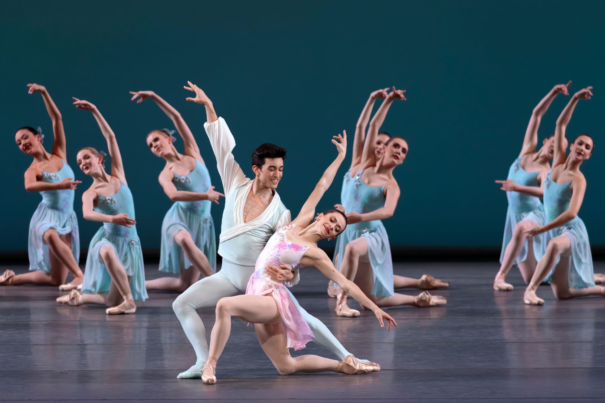 The nineteenth century roués of the Parisian Jockey Club were after excitement too, and insisted seeing a ballet in the middle of an opera so they could enjoy watching women’s legs after dinner; this rather disreputable practice has given us some of the most luscious, danceable tunes around. Balanchine used Verdi’s ballet music from “Don Carlos” not to show off his dancers’ legs but to show off one dancer's sparking feet—it is a salute to Merrill Ashley’s diamond sharp technique. The original ballet told the story of a peasant looking for a pearl and some of the underwater feel remains, as the all-female corps occasionally makes little swimming gestures with their arms, but there is no real story, just a feast of joyful, bouncy dancing. Megan Fairchild and Anthony Huxley were danced the lead couple. Fairchild is smaller and less commanding than Ashley, but she has a vivid and pristine technique, and the glorious hops on point and quick changes of direction were secure and sparkling; she radiated fun. Huxley flew through the elegant petit batterie, flowing through his jumps and turns, and made the tricky partnering look easy.