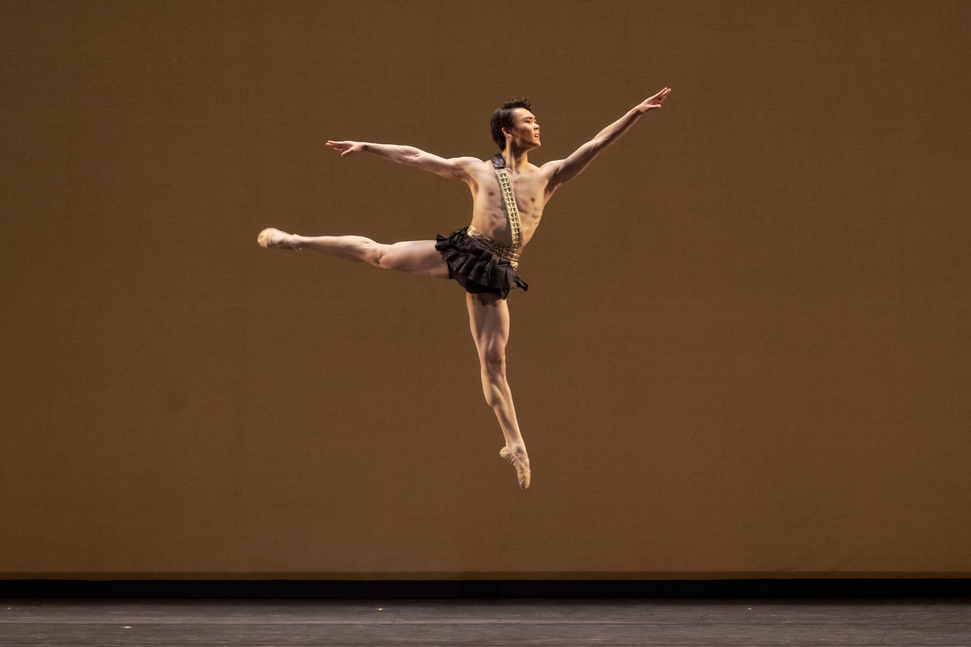 Next was the home team, NBoC’s Emerson Dayton and Noah Parets in the wedding pas de deux from Rudolf Nureyev’s “Sleeping Beauty”. Right off the bat, the start was quite shaky in terms of partnering. Dayton was often shifted off her axis, for instance in supported pirouettes, and Parets was slow to course correct. Thankfully, he came through for the daring fish dives, holding her steadily. In his variation, his cabrioles were powerful with crisp, audible beats and each of his double tours en l’air fully rotated. However, he has a habit of showing his exhaustion with large open mouthed exhales, as if in a yoga class. Dayton was gracious and elegant in her variation, making it look effortless. They danced better apart than together.
