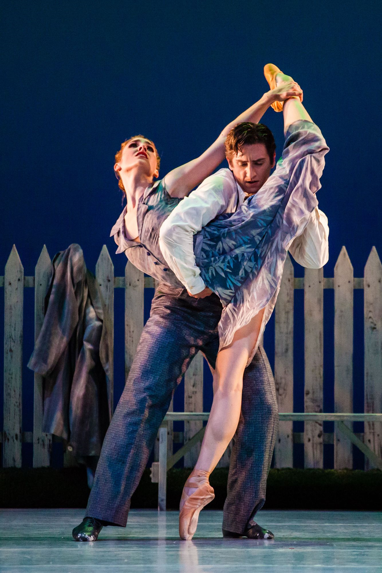 The night’s second New York premiere, the company's resident choreographer Nicolo Forne’s “Presto” set to Ezio Bosso’s Quartet No. 5, was more modern and featured choreography that reflected the music almost to a fault. With most steps falling on notes with little syncopation, this ballet too capitalized on the beauty of the four dancers it employed, and one of the two females, Jacqueline Straughan, with her incredibly arched feet and delicate leg presentation, was particularly mesmerizing. The dance seemed loosely a look at two relationships with glimmers of narcissistic streaks, as the dancers would periodically steal looks at the others on stage, as though to check if the others were watching them. But for the quizzical costume choices – the four dancers were dressed in odd futuristic silver jackets – these preoccupations with attention were almost understandable given the dancers' appeal.