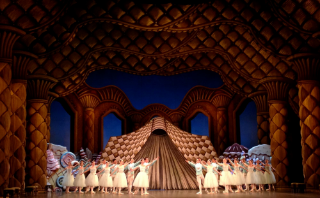 The new stage and set designs of this production proved to be of world-class caliber throughout the performance. The party scene took place in a lush interior of a bourgeois household, and it seemed as though it could have been a living room of one of the many European-styled palatial mansions that can be seen on the streets of Buenos Aires, back in their glory days. The Christmas tree had a gilded outer edge, echoing the style of the hall, which it retained as it grew in the later scene when the many mice with glowing red eyes surrounded Clara. The snow scene set was detailed without the invasive feel that can sometimes make the forest seem to be closing in on the leads; and at the end of it Clara and the Prince sailed away in a hot air balloon, the image of which was then repeated as a graphic projection onto the stage back, giving the magic sail a distant view perspective. In the second act, the Kingdom of Sweets was elaborate, with plenty of desserts represented, but in the same style as the party scene set to which the production returned for Clara’s reawakening to end the ballet.