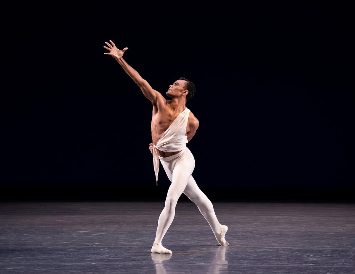 Peck, despite an uncharacteristic slip, danced with a dynamic lyricism and unmannered clarity. She was gently moving in the adagio opening, letting the plangent melody seem to ripple through her body. Her arms seemed to float effortlessly as her feet zipped through the impossibly filigreed allegro with a cheerful ease. The ballet, for all its underwater elements, is pure sunshine. Gordon was a gracious cavalier, dancing with a slightly reticent elegance, tossing off the choreography as if was a joy to dance; his fast footwork, stylish landings, and multiple pirouettes were thrilling.