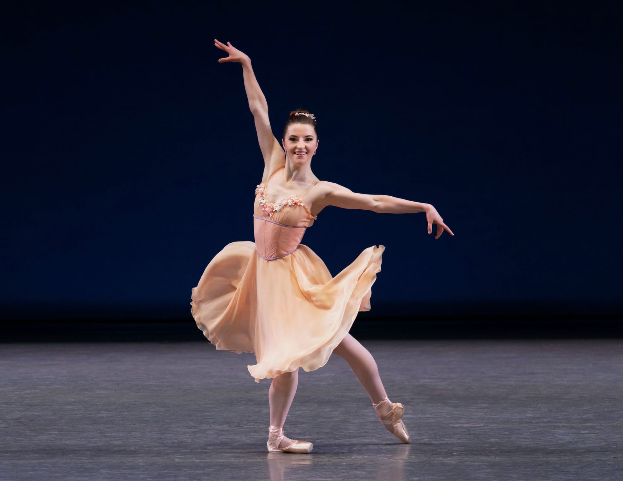 There was more whipped cream in “Tschaikovsky Pas de Deux”, danced to the music Tchaikovsky originally wrote as a cut and paste option for the Act III pas de deux in the original Moscow version of “Swan Lake”. The music was rediscovered in the 1950’s, and Balanchine used it for a stand alone pas de deux in 1960 for Violette Verdy and Conrad Ludlow. I did see Verdy dance it once, and have never forgotten her warm sparkle and glorious musicality—even her dress seemed to move in time to the luscious music.