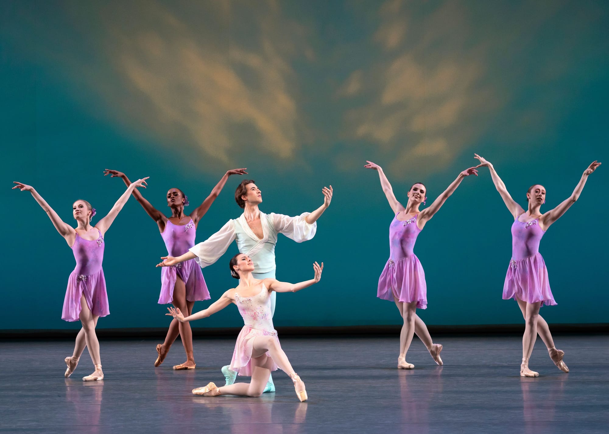 No one is left behind in “Ballo della Regina”, Balanchine’s lilting salute to Merrill Ashley’s diamond sharp technique, set to Verdi’s ballet music for “Don Carlos”. This ballet within the opera, deleted in current productions, tells the story of a peasant looking for a pearl under the water; Balanchine’s version has no peasants, but plenty of bouncing, flouncing pearl-like dancers, swimming through some of Verdi’s most infectious melodies. Tiler Peck, with Joseph Gordon as the lone man, were the lead couple. The ballet has some of the fastest, neatest footwork in ballet, but Balanchine let the excitement build, and the soft, lyrical opening, where Gordon seems to be looking for something, sets off the later fireworks.