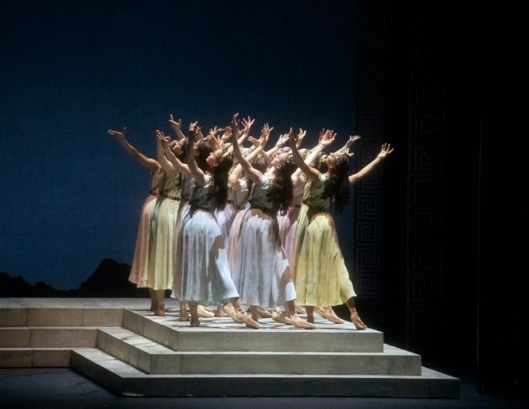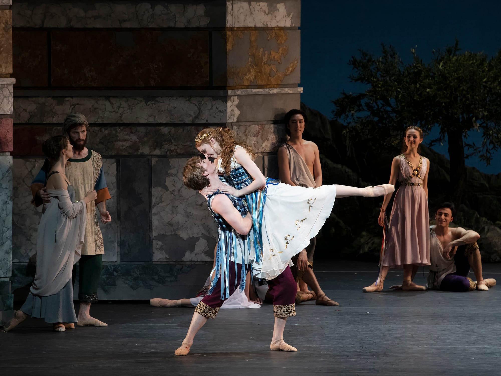 There is little mime, so the story is told, not always clearly, through movement. The first act is the most successful, with the ladies of Syracuse forming a Greek chorus, reinforcing and sometimes commenting on the story. Their choreography is luminous, as Ratmansky has them flow into sculptural shapes, breaking into little groups, weaving their arms in true Isadora style. The male corps, especially the boys from Syracuse, form distinctive and arresting shapes, looking like groups of athletes from a Greek vase as they toss their invisible discuses.