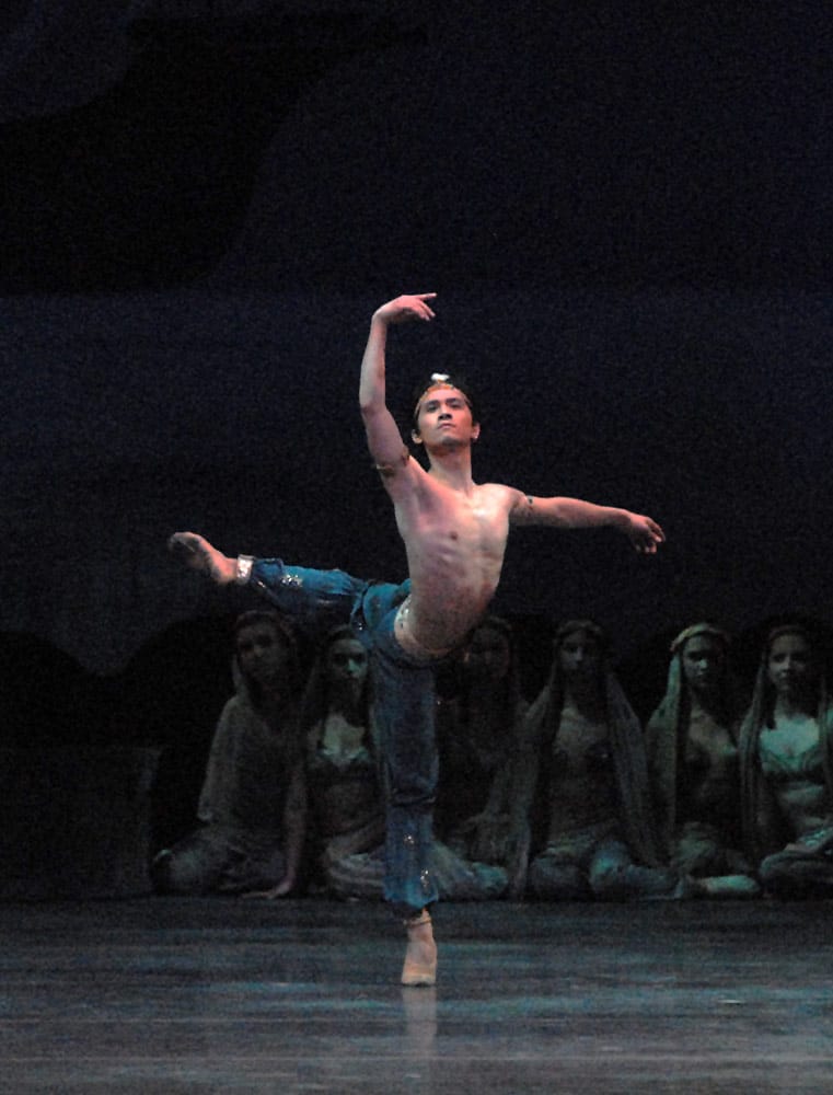 Jeffrey Cirio was a stylish Ali, and he danced with a weight that gave his smooth and secure landings an emphatic power. His turns a la second were stunning, as he seemed to speed up and slow down at will, and his dignified demeanor increased the excitement, as he didn't telegraph his preparations.