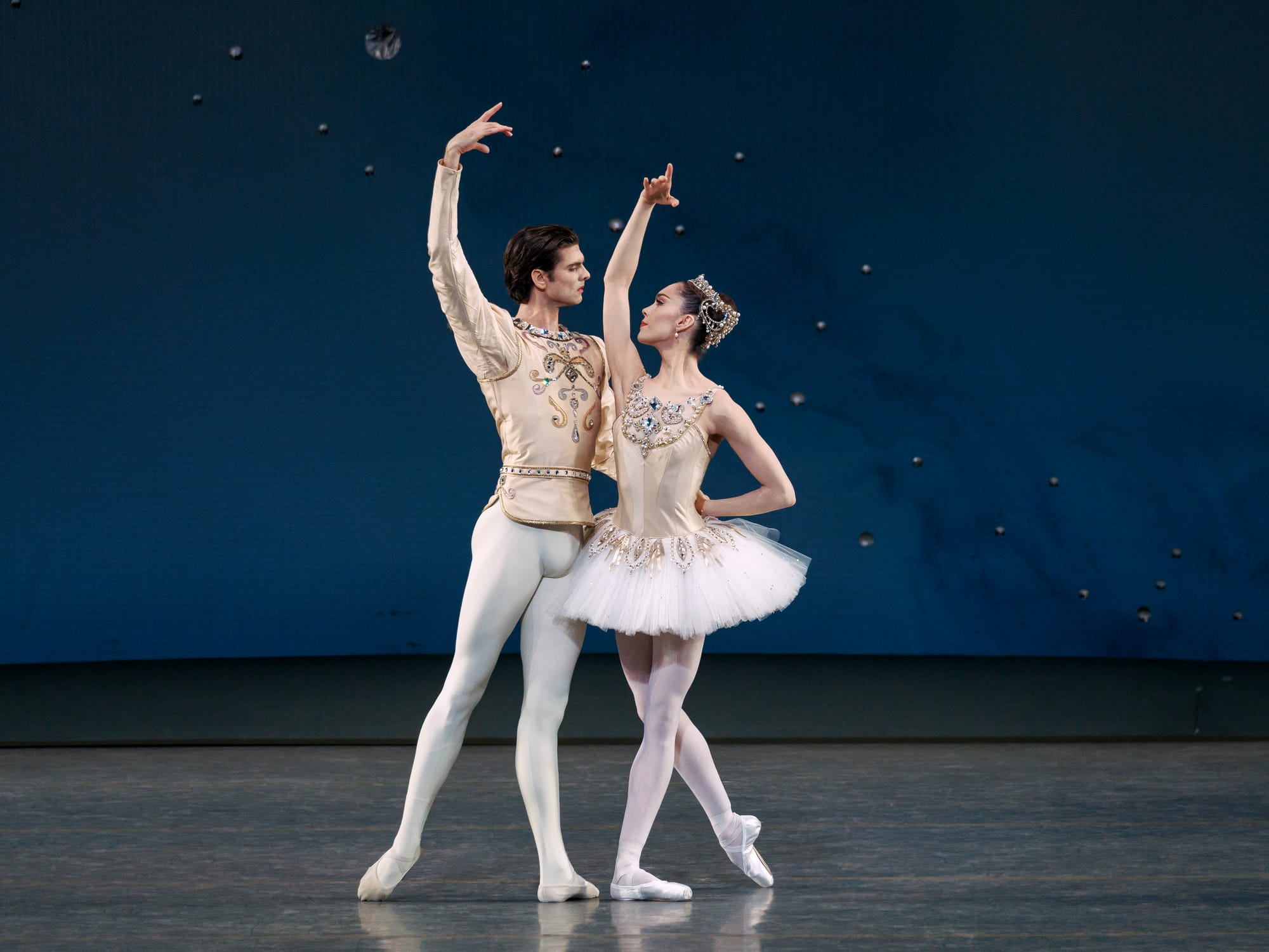 Which is not to say "Diamonds" didn't, though some corps work felt muddled, and the debuting leads, Mira Nadon and Peter Walker, got swallowed by the crowd in the coda. Before that, however, their first appearance in the ballet had some beautiful, defining moments. Nadon brought refinement: her upper body sang with every phrase of Pyotr Tchaikovsky's Symphony No. 3, and Walker carried himself with genuine princely bearing. Alas the whole wasn't fully fleshed out – the role asks for more than clean execution; it asks for the Russian soul at its core, that sense of longing and interior vastness that gives "Diamonds" its elegiac depth. The focus on footwork by Nadon sharpened that effect: each small step landing fastidiously in fifth position, so focused on placement that the dancing lost its shimmer. In the finale especially, she spent so much time polishing this diamond that it never quite dazzled — particularly alongside Walker's freer, more expansive gestures.