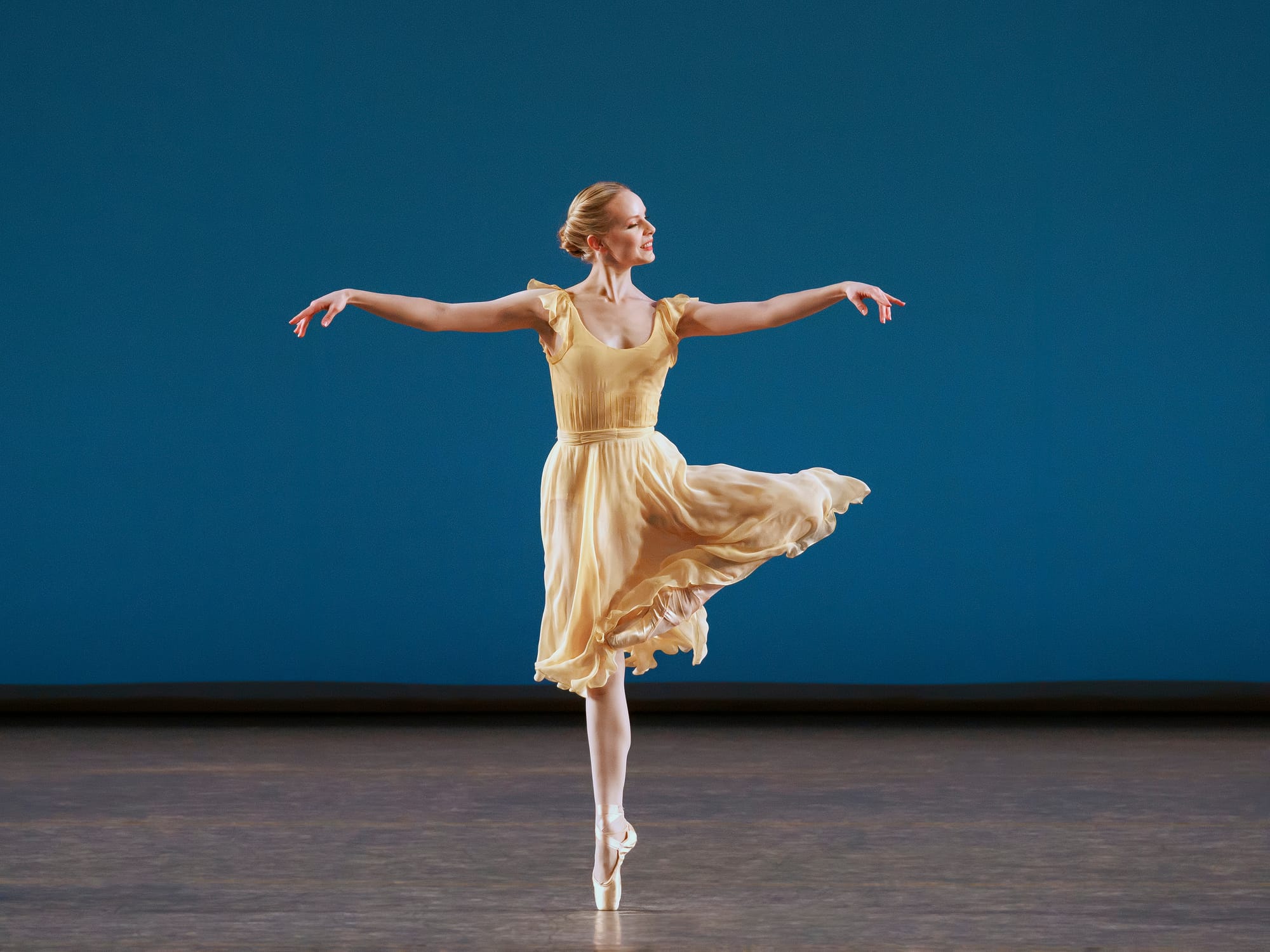 The woman he couldn't resist was Emilie Gerrity in mauve. Their pas de deux unfolded like an intricate conversation ranging from small talk to refined poetry, and Mabie was an attentive partner throughout. There was real connection, and Gerrity's leap into his arms at the close felt entirely inevitable. Another highlight was her trio with Dominika Afanasenkov in blue and Indiana Woodward in pink – three women of abundant richness and distinct personality. Whereas Afanasenkov was radiating joy, Woodward was a dainty, nuanced dancer, and paired with Gerrity’s expansive movement it made for a memorable scene.
