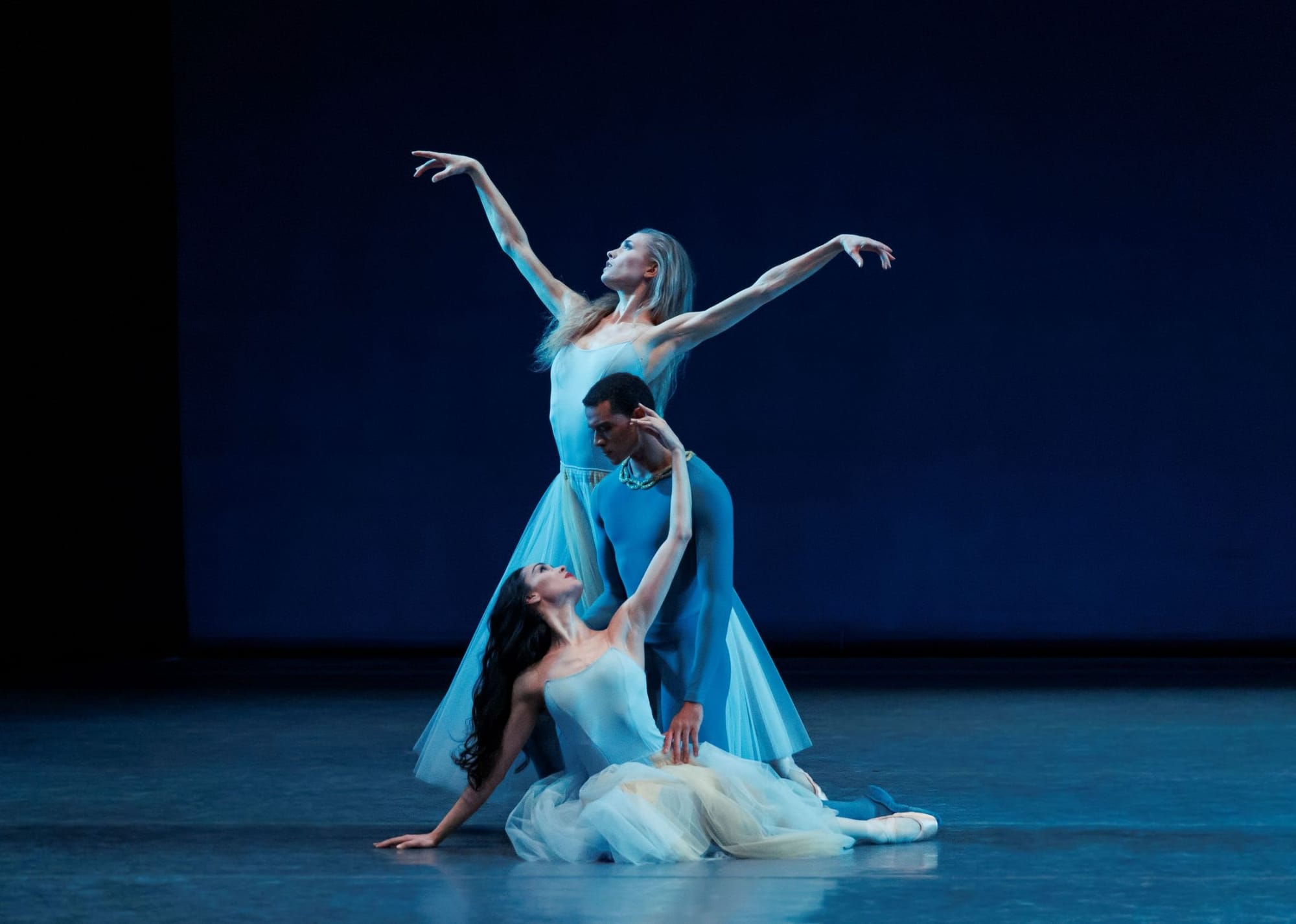 The casting gods, too, were working overtime on “Serenade”, which received one of the most cohesive and compelling performances I have seen. Mira Nadon (Waltz Girl), Miriam Miller (Dark Angel), and Indiana Woodward (Russian Girl), supported by Peter Walker and Preston Chamblee, created a drama that seemed to emerge from the steps and the music. It may be farfetched, but the ghost of “Giselle” seemed to hover over Nadon’s Waltz Girl. There are certainly faint echoes of the famous ballet in Balanchine’s choreography in the way the corps peels off one after another to disappear into the wings and and in their quick series of arabesques voyagé. Even Nadon’s brief hug of the anonymous corps dancer before she ascends into to light seemed like an echo of Giselle’s farewell to Birthe—in an Instagram post Nadon does refer to the moment as embracing “Mother”.