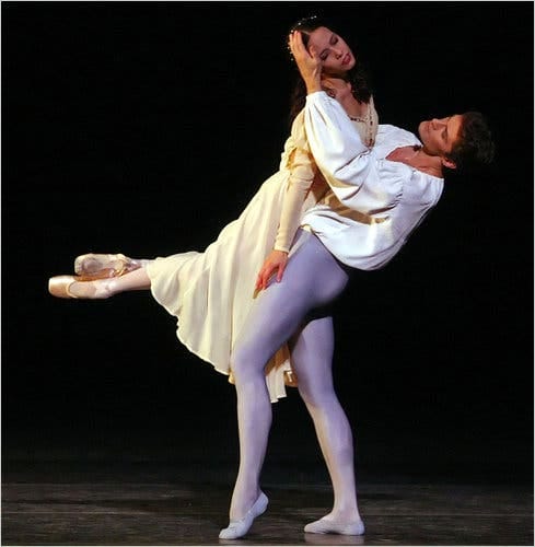 There is a great deal of kissing in Kenneth MacMillan's bedroom pas de deux from "Manon", danced by Diana Vishneva and Jose Manuel Carreño. Vishneva used her long and elegant arms to create a fascinating child-woman, grabbing for anything she wanted. Carreño, though he had some trouble with the lifts, was certainly worth grabbing, but the choreography is basically from the roll on the floor and look anguished school, and needs stars to make it work.