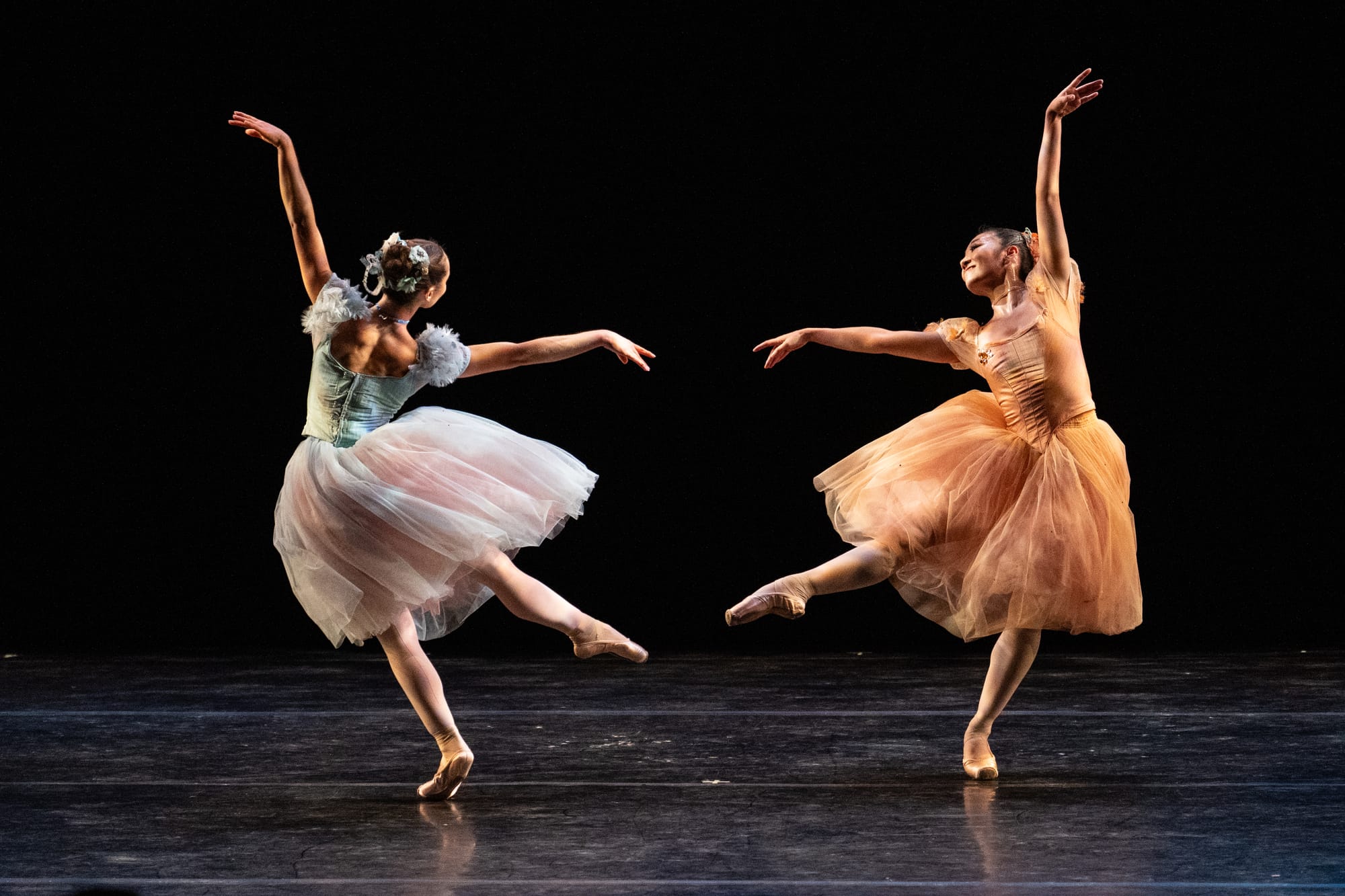 But that was just a warm-up. With “L’air d’Esprit,” a duet dedicated to legendary ballerina Olga Spessivtzeva and set to music by Adolphe Adam, came a complete tonal shift. Misa Kuranaga of San Francisco Ballet and Angelo Greco of Houston Ballet presented the work with such luminous romanticism that it felt like “Giselle” reimagined, this time with a happy ending. From the moment Greco carried Kuranaga onstage, weightless as a spirit, through her singing arms and impossibly lyrical poses to his transfixed partnering, the piece breathed tender joy.