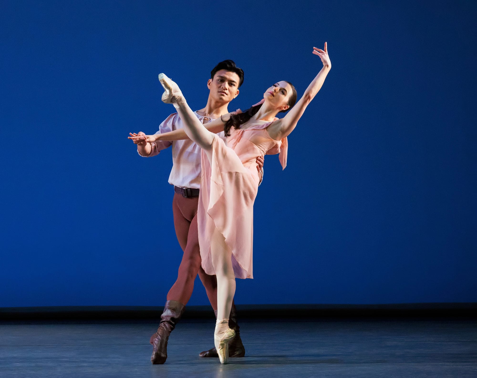 The double bill of Jerome Robbins’ “Dances at a Gathering” and Balanchine’s “Brahms-Schoenberg Quartet” was a glimpse back at an idealized European past, where elegant youths wore colorful chiffon while dancing to Chopin and, in an idealized Vienna, beautiful and mysterious women enticed stalwart men while luscious Gypsies cavorted on the green. Both ballets can seem long and occasionally overly sentimental, but these fresh and lively casts gave committed and moving performances.