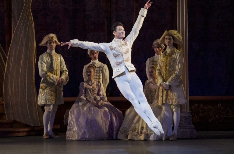 Woodward put aside her happy Act I smile and moved with an inward glow; the pas de deux was both private, as the couple kept their eyes fixed on each other, and expansive, as their warmth seemed to radiate out. The highlights were all there—the one handed fish dives, the secure balances, and the fast footwork—but there was poetry as well. The solemn “My heart is yours” mime and the quiet moment after the dancing where Woodward nestled in Chan’s arms were profoundly moving and the final apotheosis combining grandeur and serenity, amplified by Tchaikovsky’s use of the French song “Vive Henri IV”, felt like a strong, if fleeting, case for monarchy.