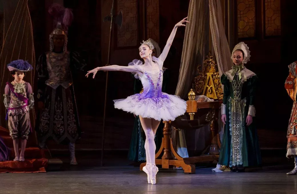 Many of the packed Act III variations were debuts as well, and Martins has paced the act well, alternating character and classical dances. The always popular cats were Quinn Starner and Kenneth Henson (both debuts), and they scratched and rolled with a light touch. The more classical jewels (Jules Mabie as Gold, Mary Thomas MacKinnon as Diamond, Olivia Bell as Emerald, and Kloe Walker as Ruby, all debuts) had a slightly mixed success, with several unfortunate slips. Martins’ choreography for Gold and Diamond is a bit rushed and unmusical, but Emerald and Ruby are both recognizably Petipa; Walker’s Ruby was especially sparkling. And so were the Court Jesters, which Martins choreographed to the bouncy Tom Thumb music. Spartak Hoxha and Simeon Daniel Neeld were led by Alexander Perone, who tossed off some very impressive sideways split jumps with a lighthearted glee. But what I will remember longest, I expect, is Laracey’s spell, and the feeling that somewhere the Lilac Fairy is still growing a garden.