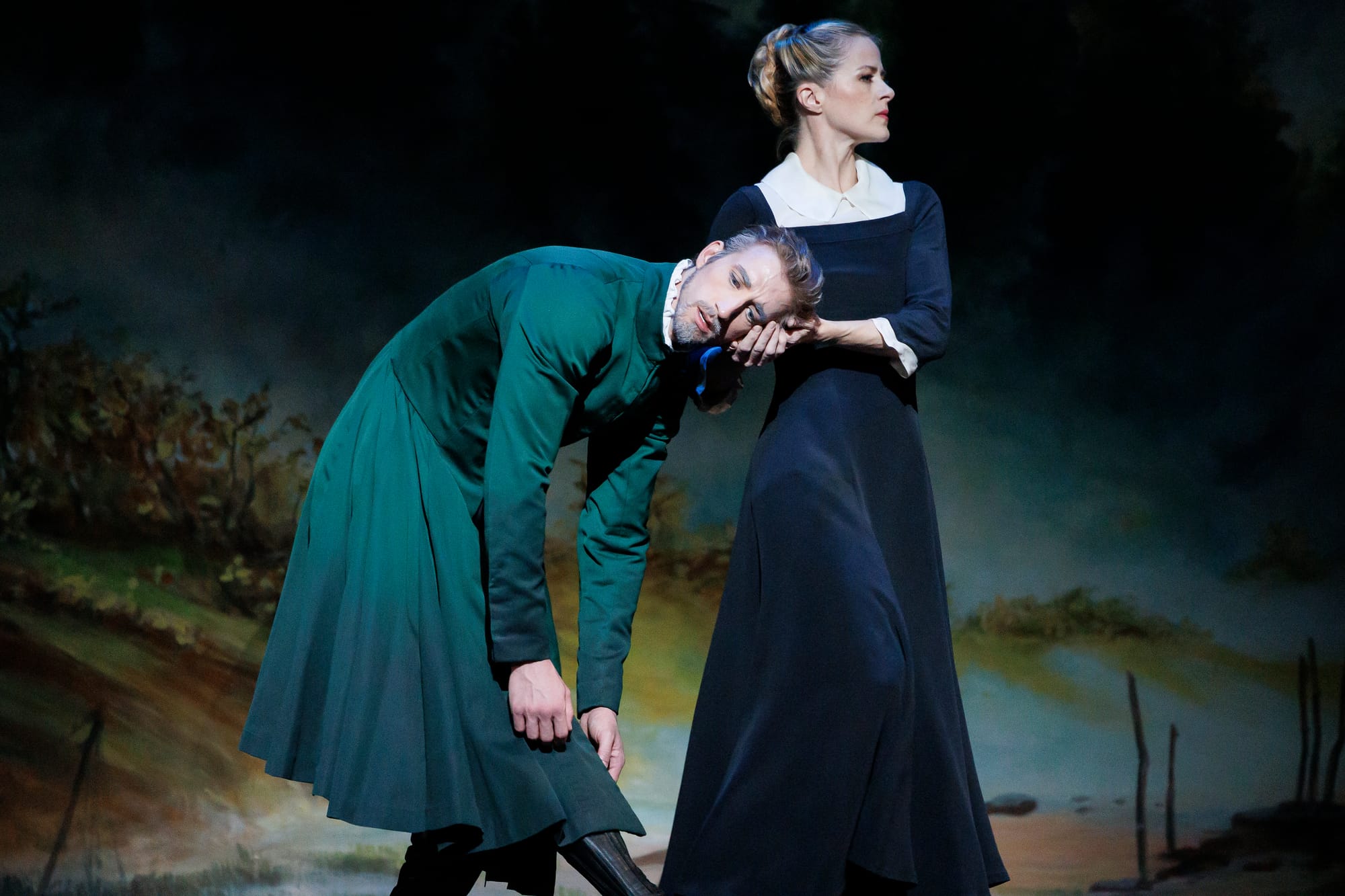 Wheeldon adds a zippy prologue to quickly establish the characters and their relationships. The childhood best friends, Leontes and Polixenes, are seen playing and growing up together before both becoming rulers, of Sicilia and Bohemia respectively. Their almost brother-like closeness is shown, which adds to the sadness of their eventual falling out in Act I. A movement motif with the body leaning forward and back with one leg extended signifies their friendship like a secret handshake (and reappears in their reconciliation in Act III). Leontes is seen wedding Hermione and then giving her a large emerald necklace when she gives birth to their son, Mamillus.