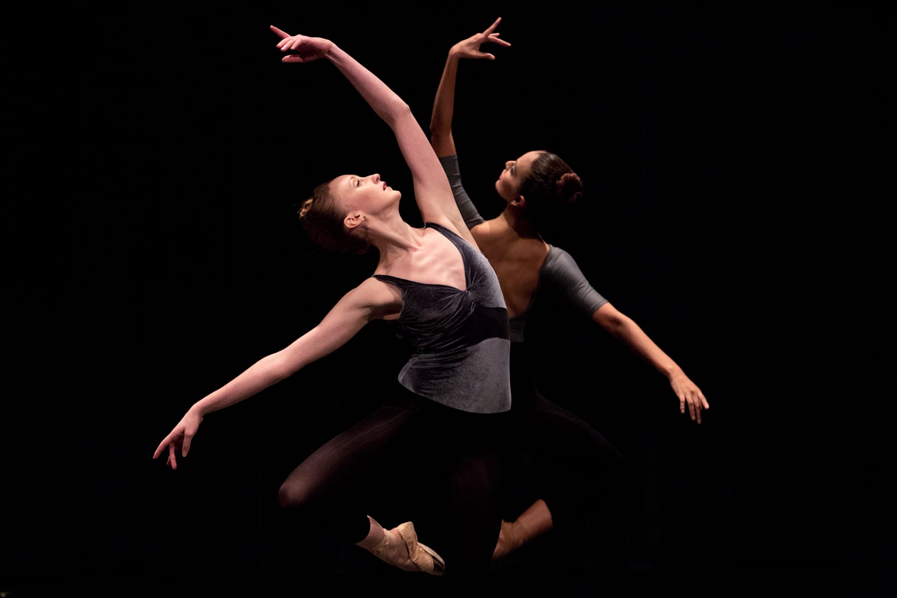 Lisa de Ribere, a more experienced choreographer, had the second, Andantino section. It was pleasant but not memorable, though Kaitlyn Gilliland (an elegant blond formerly with NYCB) had a leggy solo. She was also featured in the third Prestissimo section, choreographed by Adam Hendrickson. This, for me, was the most interesting section, with Gilliland in practice shoes, dancing a pulsating solo to attract Steven Hanna (as the program spelled his name, though when he was with NYCB it was Stephen). The dancers' bending, twisting movements echoed each other, as they flowed together, stepped apart, and finally ended supporting each other.