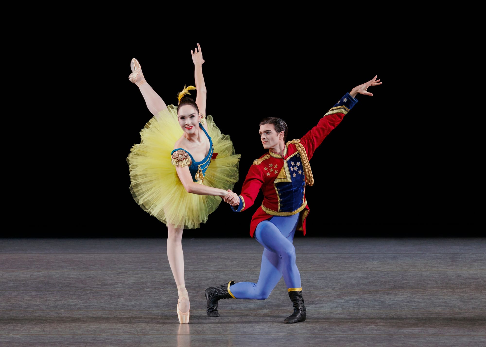 “Western Symphony”, for all its frivolity—it could be called “Petipa on the Prairie”, with its formal corps evoking sagebrush and tumbleweed instead of roses and fountains, is a rigorously constructed ballet, and got a rousing performance. The opening movement, danced by Olivia MacKinnon and Gilbert Bolden III, was a kaleidoscope of color and pattern and the frisky pas de deux had a real arc, as MacKinnon’s frisky dance hall girl grew more and more confident. Bolden is a remarkable dancer, who is both a self-effacing, devoted partner and a swaggering bravura dancer. He was wonderful as the soaring cowboy, twirling his invisible gun while almost winking at the audience.
