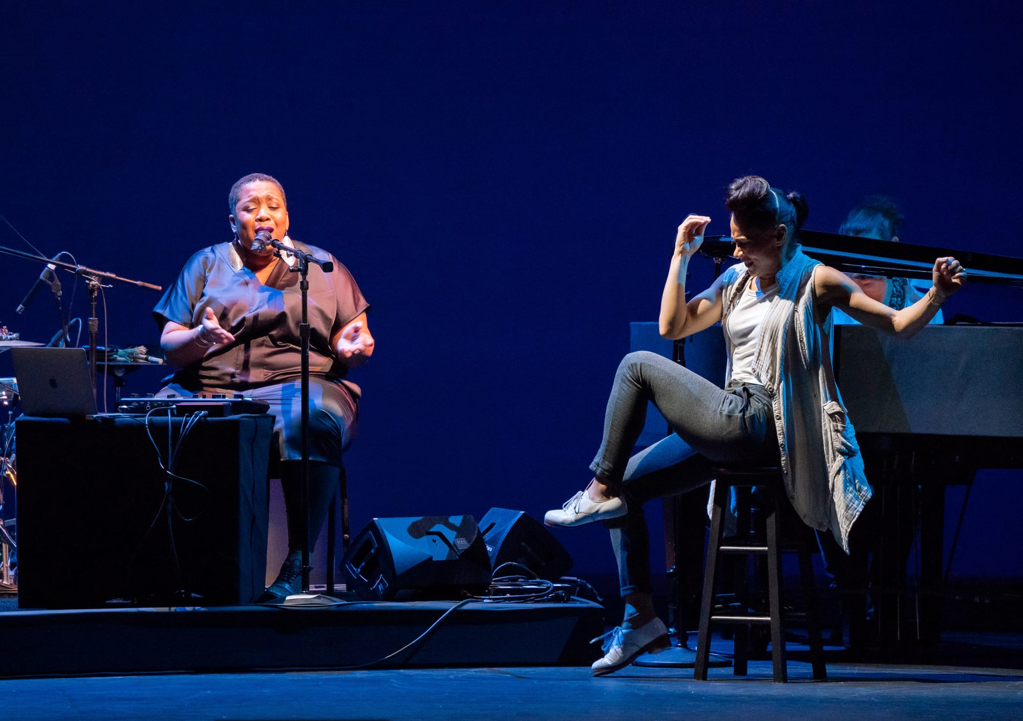 The balance of performance time was clearly shifted to Casel’s premiere, with the other two works feeling, somewhat regrettably, more like opening acts. But, to call this work strictly Casel’s is probably inaccurate, as the stage was taken up as much by dancing as by the original music and luscious live singing of Crystal Monee Hall, who was also the musical director of the production. The work as a whole, with gentle social justice undertones, felt like a call for inclusivity, but not just in the diversity sense that we are used to encounter in this topic. Sure, Hall’s reimagining of “This Land Is Your Land” elegantly and beautifully struck those chords, but the production also intertwined music and dance, integrating the movement and tap expression further into one presented whole. By far the best moment of it was when Casel sat down and listened to Hall, adding gentle taps while still seated. The connection between these two artists in that moment cannot be overstated, and it was interaction of the most organic sort.