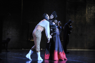 This wasn’t the only time Preljocaj suspended his dancers in the air. In a scene that followed Snow White’s murder, her own deceased mother floated onto the stage, descending and kneeling at her daughter’s body, lifting it up, with the mother and daughter vertically inverted, floating connected and suspended in near-darkness. It was an eerie scene, but like many of Preljocaj’s creations added to the surreal qualities of the ballet.