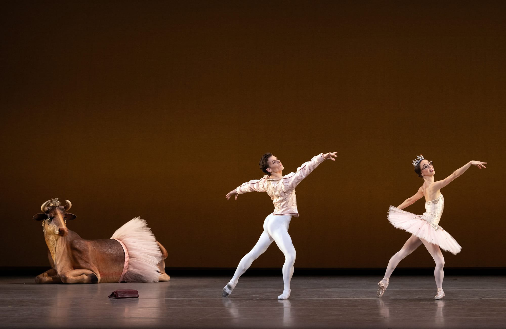 From this dreamlike opening, the program shifted gears dramatically. “Le Grand Pas De Deux” with Skylar Brandt and Jake Roxander dispelled some of the reverie with a hefty serving of humor – a comic jolt that proved welcome as it helped refocus attention on the performances to come. If Brandt can be said to have her bread and butter, balletic comedy is it. On cue, she came alive in the bespectacled ballerina role, clutching her emotional support purse and miming persuasively in between the technically demanding sections. Roxander had no trouble keeping up, and if anything was a worthy contrast as a somewhat more refined and mature partner. It helped the comedy that when they briefly ventured into the technical steps, those were executed cleanly. Then, “Rhapsody” went beyond clean. Fleytoux and Herman Cornejo brought elegantly classical execution to Ashton's choreography, though their pas de deux seemed to be over shortly after it started – having these dancers on stage longer would have been a delight.