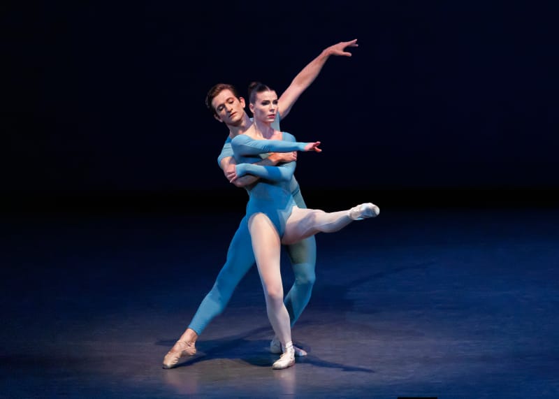 From the opening tableau with Bell standing by the piano and four couples locked in embraces on stage, to Bell’s solo later on where she made eye contact that felt like a real connection with the pianist Michael Scales, the ballet often seemed like Bell’s duet with the musician, and really the music itself. The varying other moments, like Bell giving cues in the choreography and “directing” the dancers – steadfastly but with tender care, as though not wanting to err in her instructions – were a further element that felt like an earnest invitation to peel the curtain and show how the dancers feel the work, and not just perform it. So many of the scenes were imbued with an authentic genuineness and warmth that it favorably underscored the cooler and deeper presence by Mary Thomas MacKinnon, in a debut. Dancing with Harrison Coll, the richness of movement from this ballerina made the choreography, with its various abrupt holds and accents, feel abbreviated and not luscious enough for what she was clearly capable of showing. It made one wish to see her cast in more leading roles, and reveal more of herself as an artist.