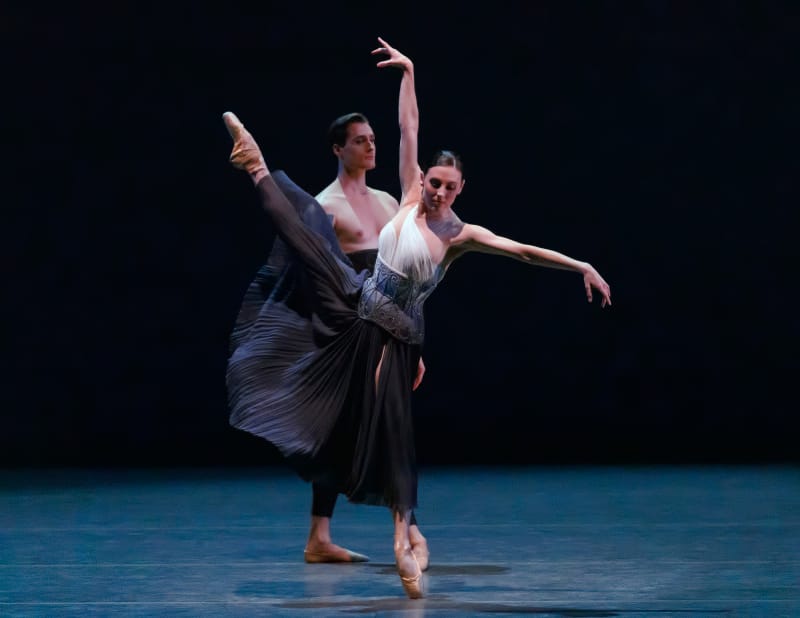 The dancers in Peck’s own “Concerto for Two Pianos,” which followed, echoed that commitment. This ballet somehow looked fresher than during its February premiere, with both Roman Mejia and Mira Nadon clearly having settled into their roles and found a solid footing in the choreography. They seemed comfortable with the very intricate steps, and that opened the door for freer artistic treatment – more playfulness, accents and flow, all intuitively distributed. Of note too were Emma Von Enck and Chun Wai Chan, whose dancing was crisp, polished and looked like a lot of fun.