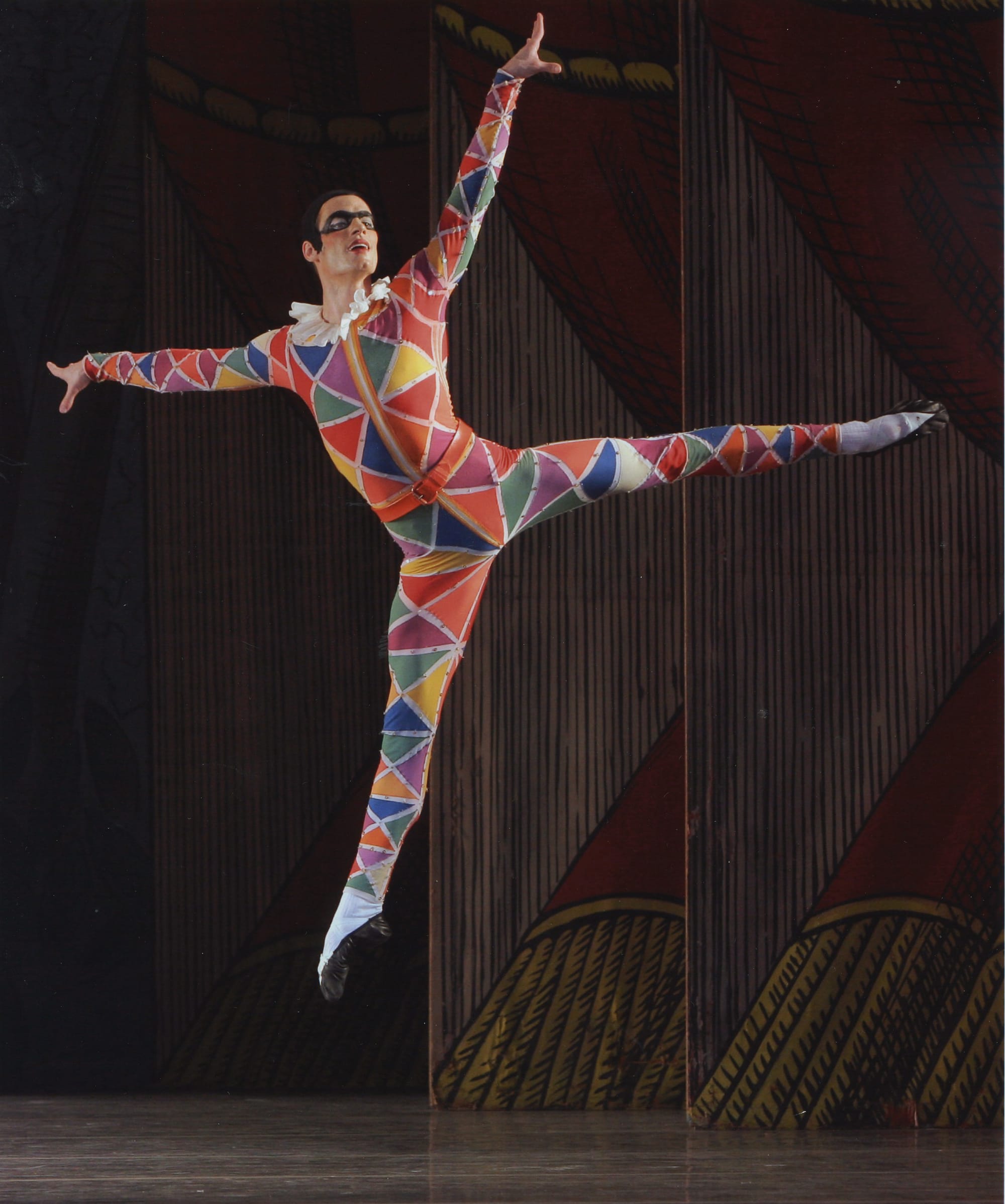Her Harlequin, Andrew Veyette, is not a natural comic and he didn't convey all the anarchic joy of the Commedia character; at times he looked as if he couldn't wait to take off his ruff. His dancing, though, sparkled, as he showed off his sharp, clear beats and crisp turns.